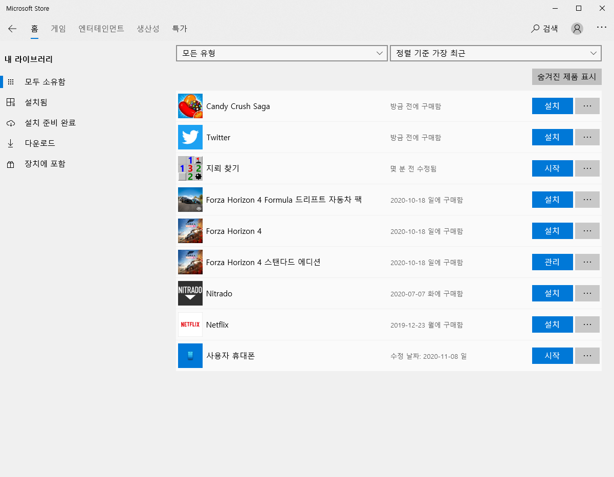 여기서 이전 윈도우xp 또는 윈도우7에서 했었던 지뢰찾기는 물론 프뢰셀 등 아주 여러가지 게임을 설치할 수 있게 변경되었습니다.