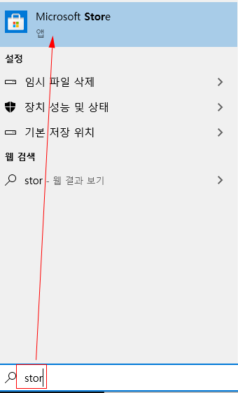 윈도우버튼을 누른 뒤, store 라고입력합니다.