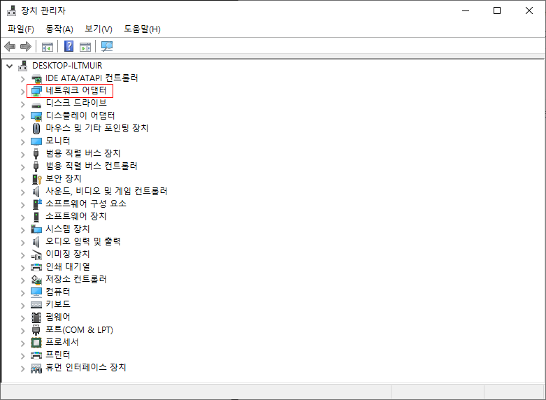 여기서 체크하여야 하는건 네트워크 어댑터 입니다.
