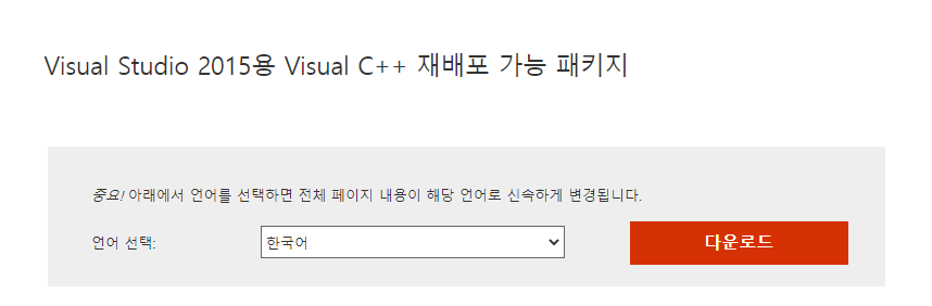 Visual Studio 2015용 Visual C++ 재배포 가능 패키지