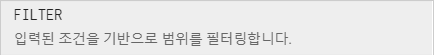 이번시간에서는 FILTER에 대한 함수를 설명하는 시간이기때문에 FILTER를 통해 값을 나열해보도록 하겠습니다.