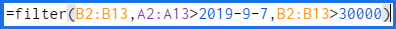 저는 2019-09-07 일자보다 작은 데이터중, 매출이 3만원이 넘은 데이터에서 일자를 먼저 뽑아내고싶습니다.