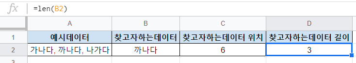 찾고자하는 데이터 위치를 찾았습니다. 그리고는 다음 찾고자하는데이터의 길이가 얼마나되는지 LEN 함수를 사용하겠습니다.