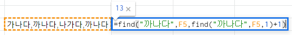 =find("까나다",F5, find("까나다",F5,1)+1 )