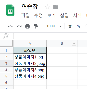 주로 사용하는 스프레드시트의 연습장이라는 파일입니다.