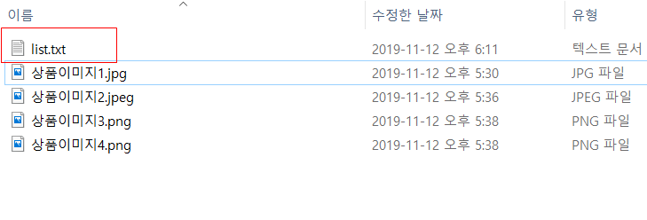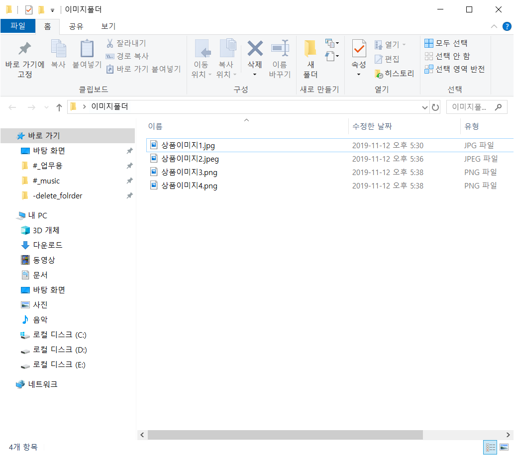 예시입니다. 위와같이 데스크톱이 있는데 상품이미지의 확장자가 각자 따로따로인겁니다..