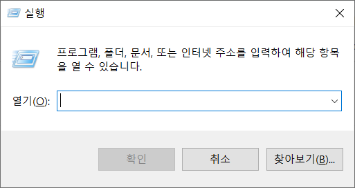 우선 윈도우키 + R 을 눌러 실행창을 띄워보도록하겠습니다. (일일히 누르는것보다 단축키를 외워두면 생각보다 꾀 유용합니다!)