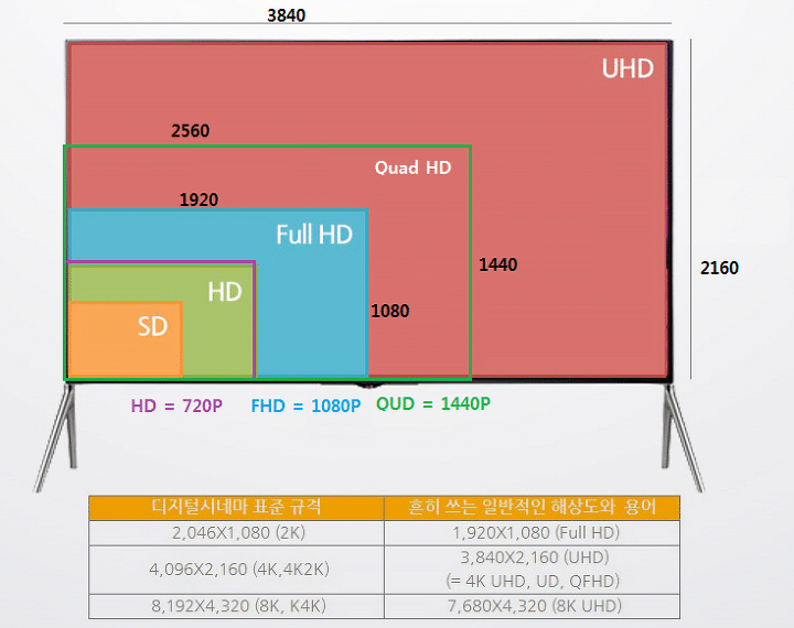 해상도입니다, FHD,HD,UHD 로 해상도가 구분된다