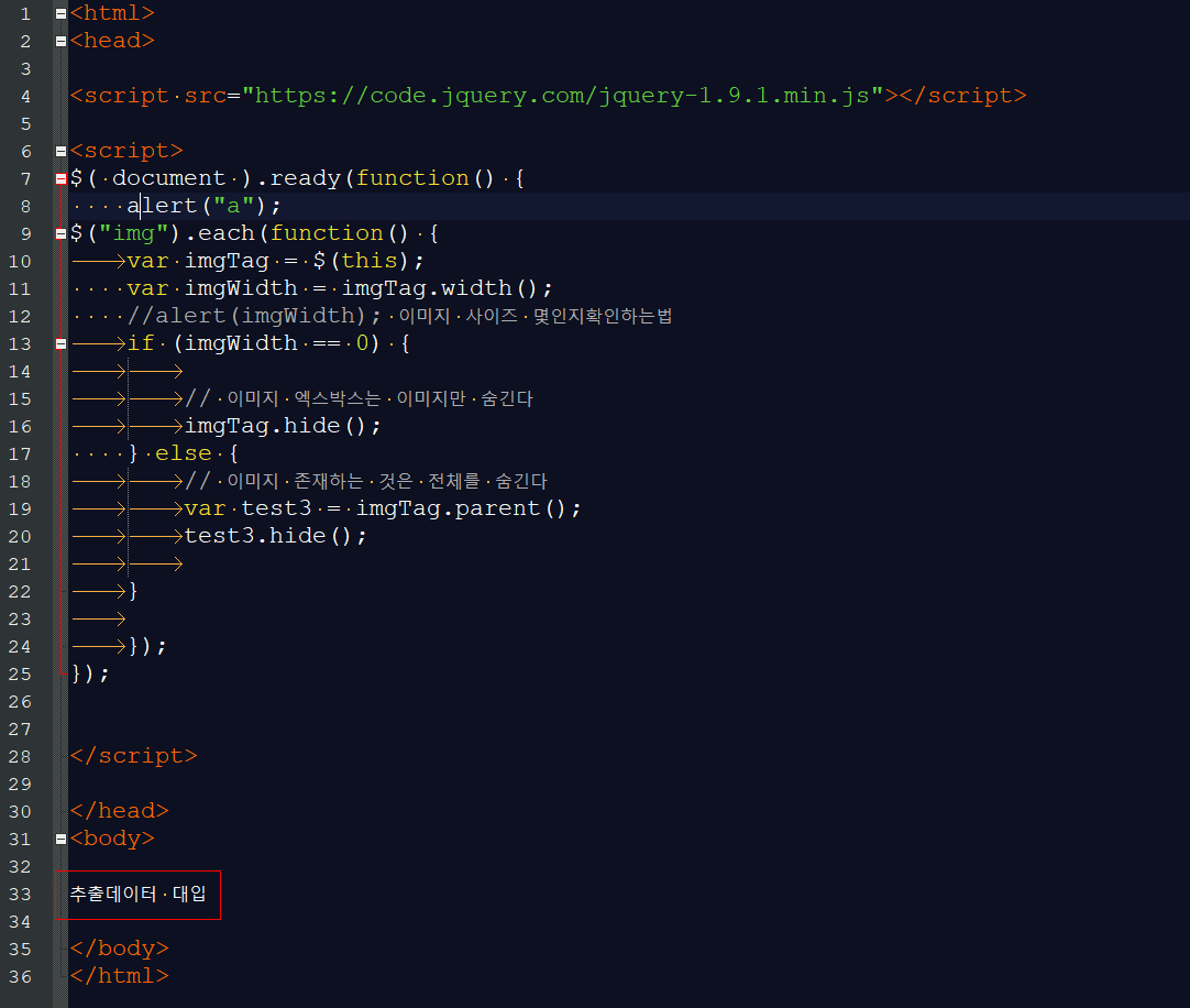 처음에 aalert("스크립트가동작합니다"); 라는 경고창 넣어 스크립트가 동작하는지를 첫번째보고,