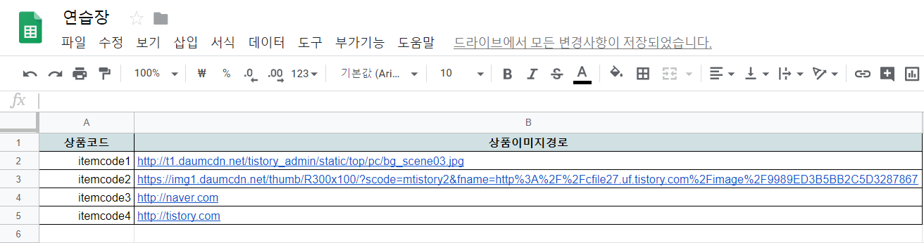 위와같이 상품코드와, 상품이미지경로를 추출하였습니다.