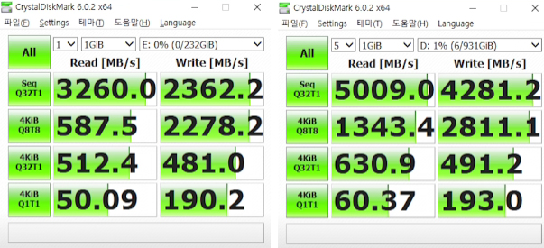 정확히 계산한다면 SATA3 연결방식보다 PCIe 3.0의 속도는 약 6배정도 PCIe 4.0은 PCIe 3.0 보다 1.5배 정도 높다고 보면된다 하지만 이는 데이터 읽기 쓰기에 있어서 자료이동간의 경우에만 그렇고 하드만을 이용하지않는 게임이나 작업에있어서 절대적인 수치는 아니니 참고바란다, 얼핏 속도차이만 봐도 PCIe 4.0이 엄청 빠른것처럼 보이지만 그렇다, 실제 정말 빠르지만 이는 절대적으로 자료를 이동할때나 큰 차이가있고 게임을 할때는 로딩이 1~2초 정도는 차이가있겠지만 큰 차이가 없다고 생각되고, 게임용이라면 금액이 저렴하고 발열이 상대적으로 적은 2.5형 SSD 를 채택하는것이 맞겠다.