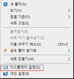 바탕화면에서 우클릭을 하게되면 디스플레이 설정이 보인다.