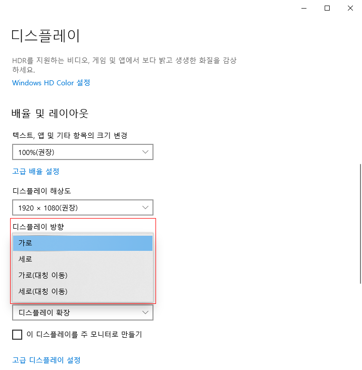 2. 디스플레이 방향 설정 변경