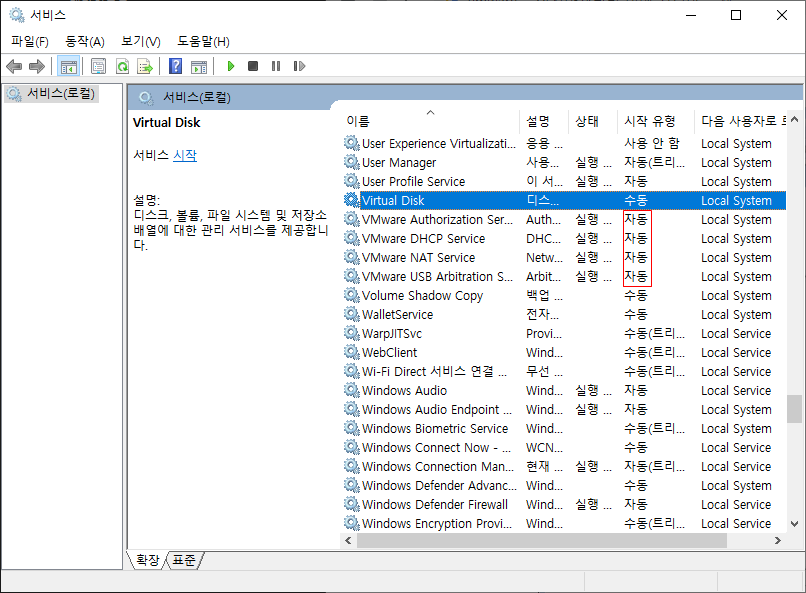 서비스는 수동으로 되어있는경우 인
