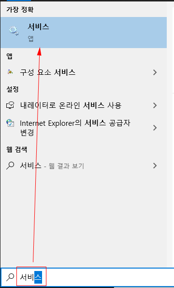 윈도우 키를 눌러 서비스를 검색한다.
