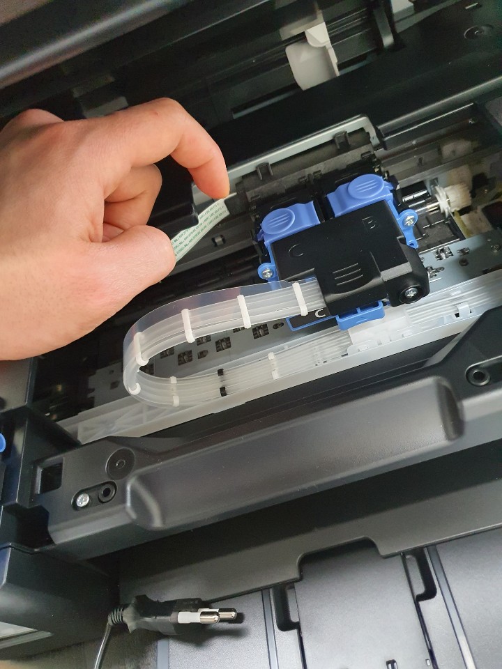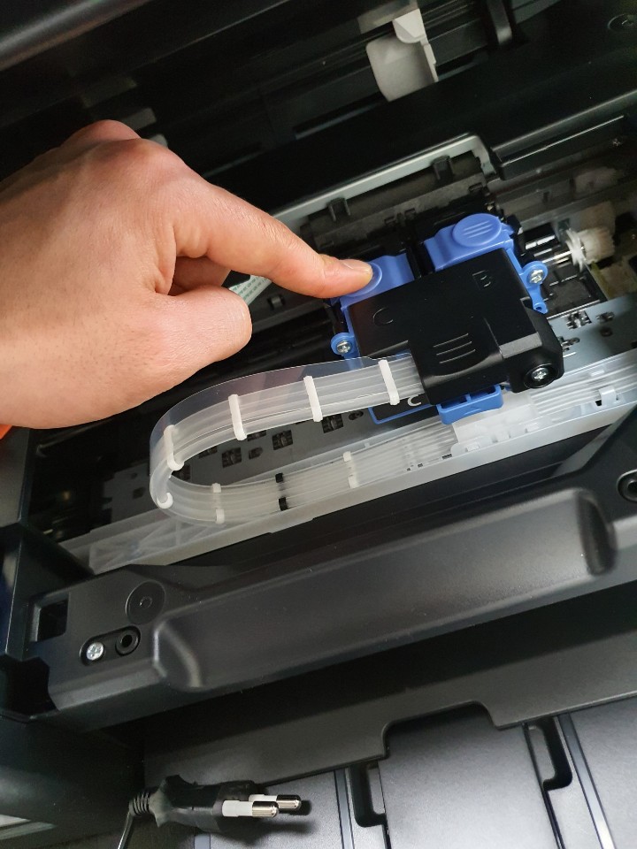 다음은 프린터 헤드? (정확한명칭은 잘 모르겠다), 잉크통으로부터 노즐을 지나 잉크가 공급되어 실제 출력시 A4용지와 맞닿아 출력하는 부분으로 보인다 위에먼저 장착 하도록한다.