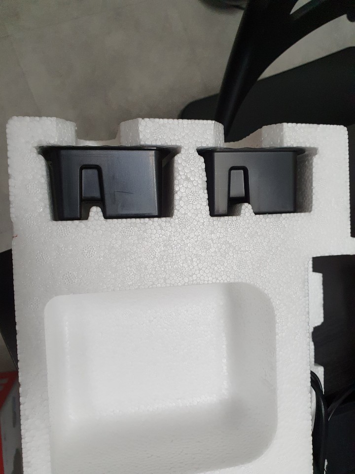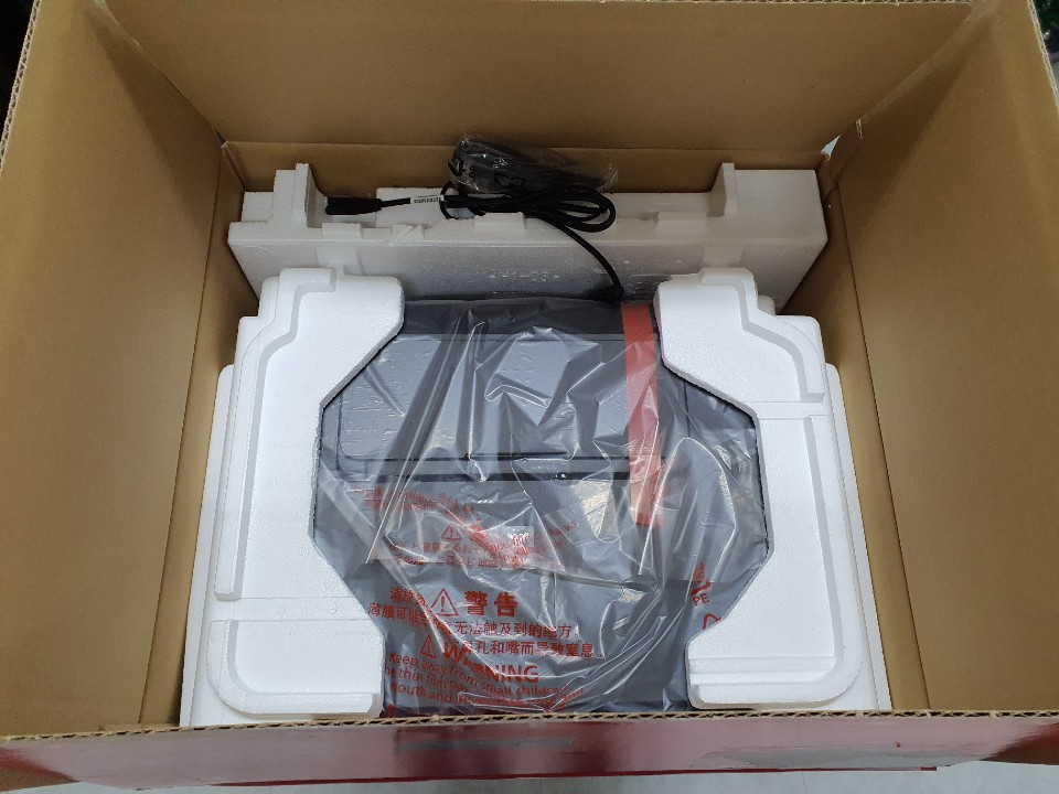 박스를 개봉하고서의 첫 모습이다, 스티로폼에 둘러쌓여 제품이 잘 보호되어있었고, 기타 케이블이 보여진다.