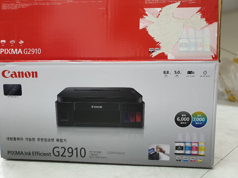 저렴한 복합기를 알아 보는도중 눈에들어온 모델은 캐논 G2910 모델이고 제품의 금액도 10만원때 중반정도, 잉크도 포함되어 있어 별도로 구매할 번거로움도 없었고 한번 충전시, 흑백으로는 6,000매를 컬러는 7,000매 까지 지원한다고 한다. 개인적으로 아주 많은양을 매일같이 출력해내지는 않지만 아날로그 감성을 좋아하는 나로써는 모니터의 화면보다는 출력하여 글을 읽는것을 좋아하기 때문에 한달기준으로 일반 개인보다는 은근히 많은 양을 출력하고 있어, 교체하게되었다, 물론 이 글은 제품을 홍보하거나 광고를 하기위함의 목적이 아니기 때문에 제품구매 링크는 첨부하지않도록 하며 별도로 인터넷을통해 검색하여 찾아보길 바란다.
