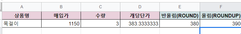 바로 응용해서 F열에 ROUNDUP 함수를 적용해봤습니다.