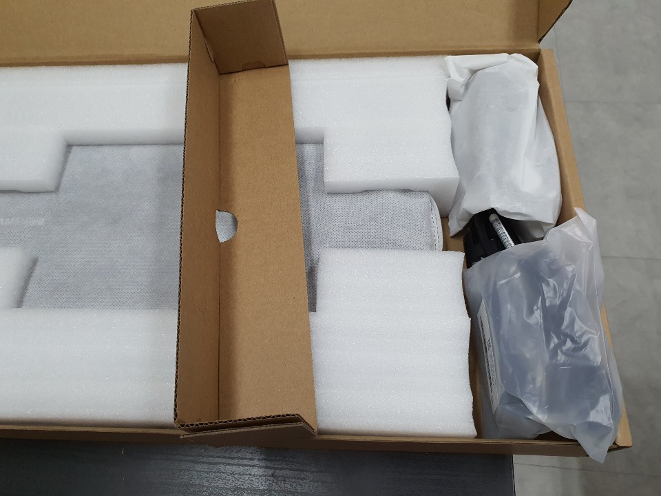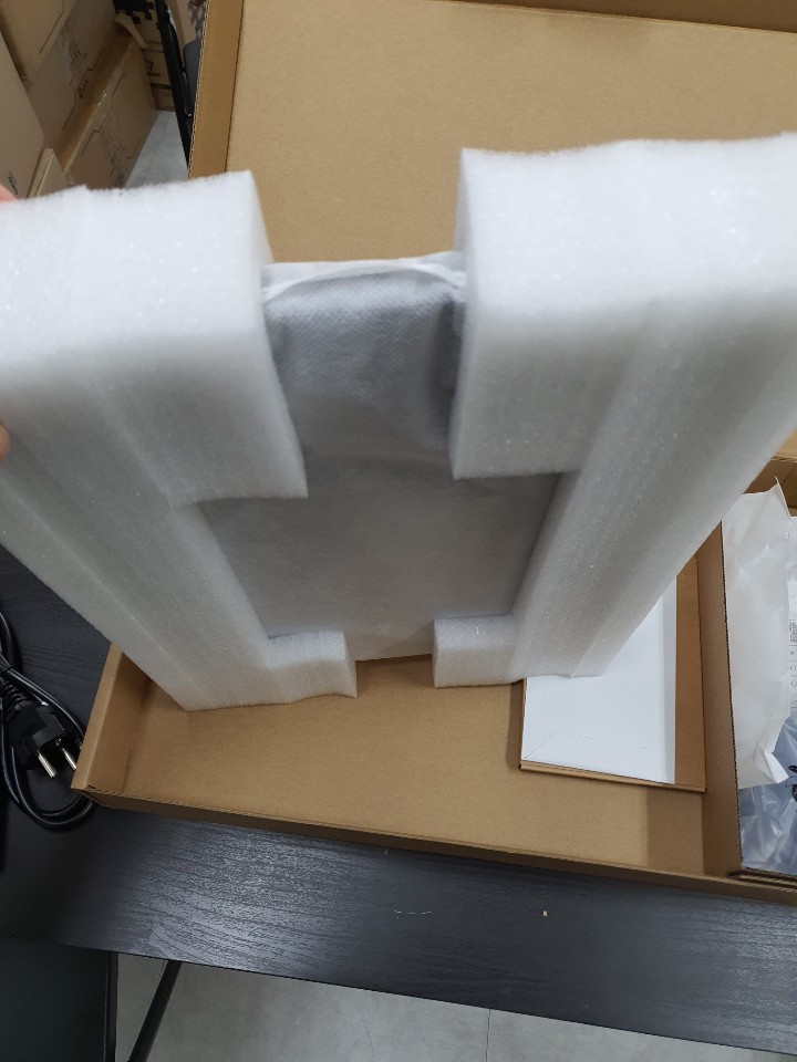 노트북이 손상되지않도록 두꺼운 스티로폼에 쌓여 있다.
