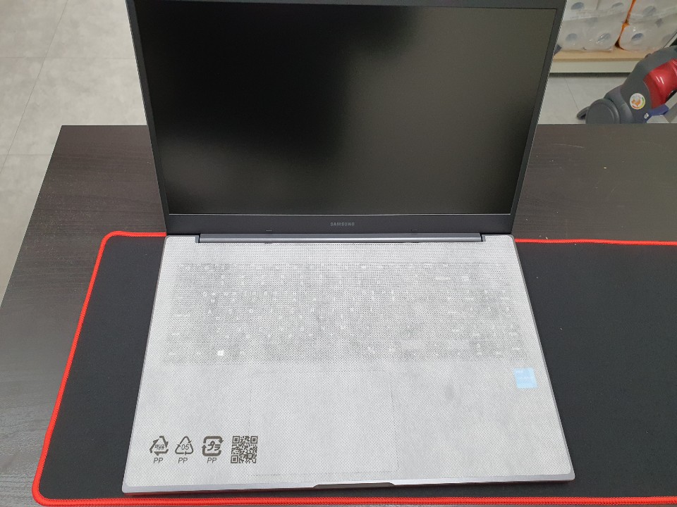 노트북을 개봉하여 펼치면 키스킨 자국이 남지않도록 커버가 안에 있다