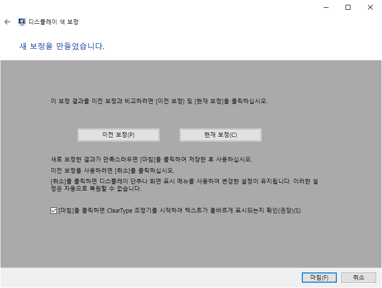 보정이 모두 완료되었다면 "마침" 을 선택