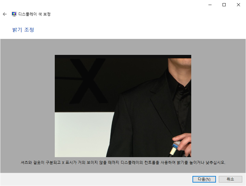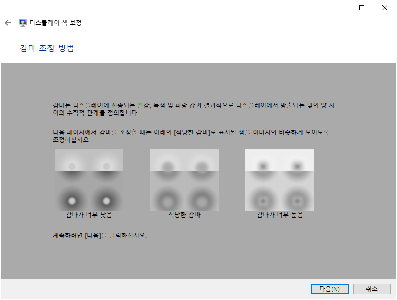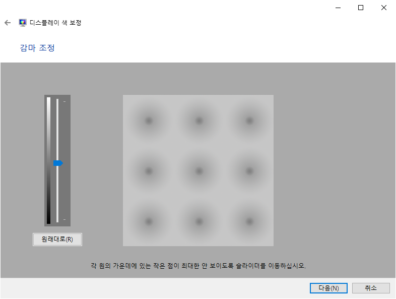 감마 조정 화면 - 좌측의 스크롤을 이용하여 감마를 조정하도록 한다.