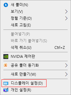 바탕화면에서 우클릭을 눌러 디스플레이 설정을 선택