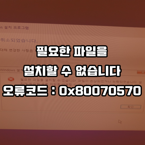 필요한 파일을 설치할 수 없습니다. 파일이 손상되었거나 누락되었습니다. 설치에 필요한 모든 파일을 사용할 수 있는지 확인하고 설치를 다시 시작하십시오. 오류코드: 0x80070570
