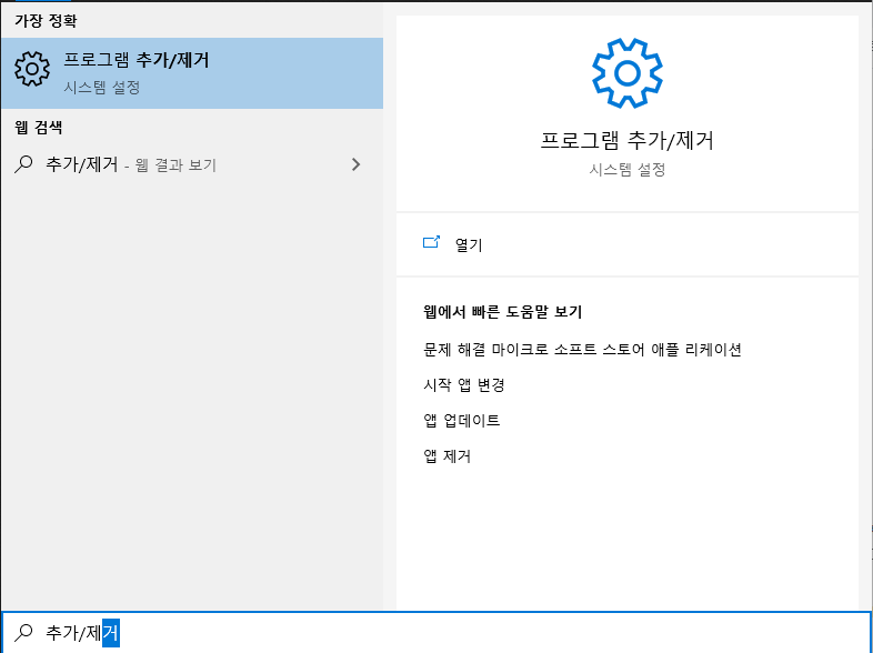 프로그램 추가/제거 로 이동하여 해당 프로그램을 찾아주도록 한다.