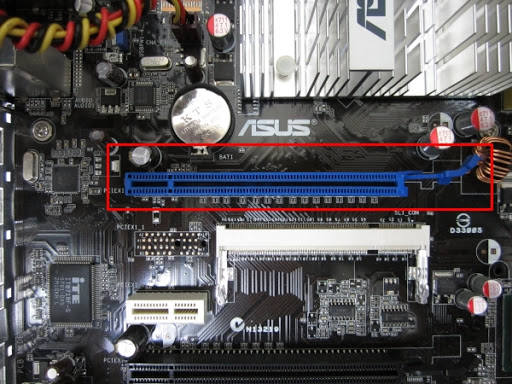 위의 부분의 PCI 슬롯에 그래픽카드 쪽 과 연결하여 장착하여주면 되겠다,
