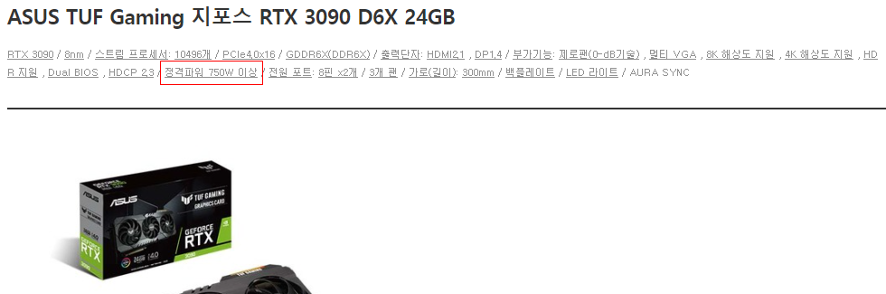 마지막으로 구매할 그래픽카드의 파워가 몇W 이상의 경우를 권장하는 지 체크해봐야 겠다, 물론 자신의 파워서플라이의 전압이 맞지 않는다면 파워서플라이 또한 같이 교체를 진행하여야 한다.