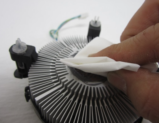 쿨러부분을 잘 닦았다면 CPU쪽도 잘 닦아주도록 하자.