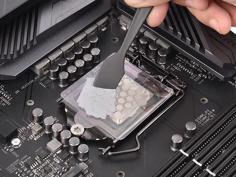 넘치지않을정도로 아주 소량만 도포하여도 CPU쿨러가 맞닿으면서 퍼지게되니 꼭 소량만 도포하도록 하자.