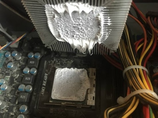 모든것은 적당히 해야한다 서멀구리스를 재도포하는것이 열전도율을 높이기위함 이지만, 너무많이 바르게되어 넘치는 경우 다른곳으로 새어 기판내에 쇼트를 내어 고장을 만드는경우도 있다