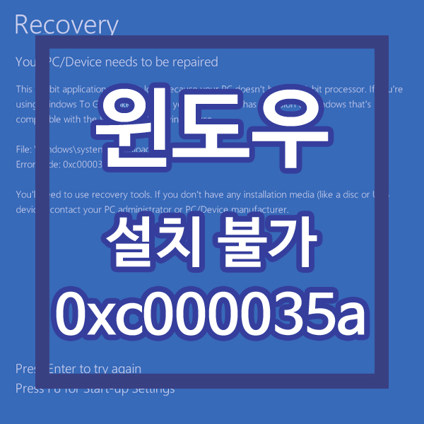 오래된 노트북이나 데스크톱의 경우 살려보고자 청소도 하고, 옛날에 장착되어있는 HDD도 SSD로 교체함으로써 정비가 다 끝났다고 판단하여 운영체제를 설치하려는 과정에서 에러코드 0xc000035a 가 확인되면서 설치가 불가능 하다면 실행하려는 응용프로그램의 비트가 현재의 시스템에서 구동할 수 없는 비트의 응용프로그램이라는 의미이다.