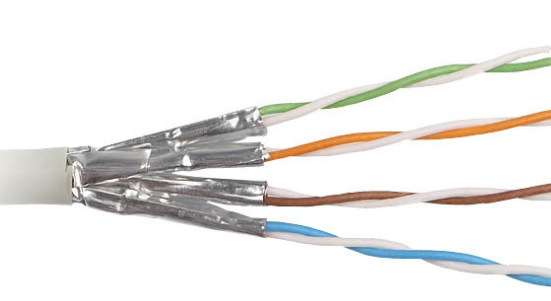 FTP (foiled twisted pair) 의 줄임말로 UTP 케이블과 다르게 8가닥의 케이블 말고도 접지선이라고 하는 선이 별도로 있고 외부의 전선 피복 안에 호일로 한번더 감싸져 있는 구조의 생김새를 가지고 있다.