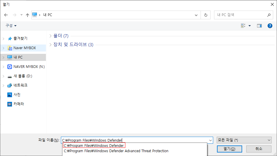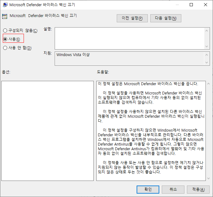 Microsoft Defender 바이러스 백신 끄기 더블클릭