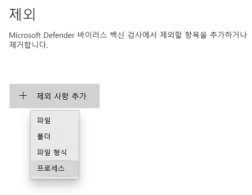 아래의 서비스명 입력하여 제외 프로세스 추가