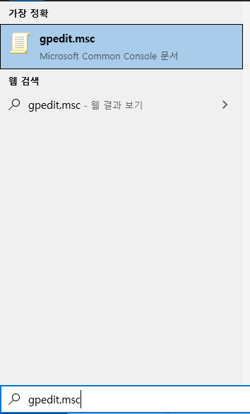 윈도우키를 눌러 "gpedit.msc" 를 입력하여 로컬 그룹 정책 편집기 실행