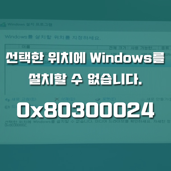 선택한 위치에 Windows 를 설치할 수 없습니다. 미디어 드라이브를 확인하세요. 자세한 정보:0x80300024