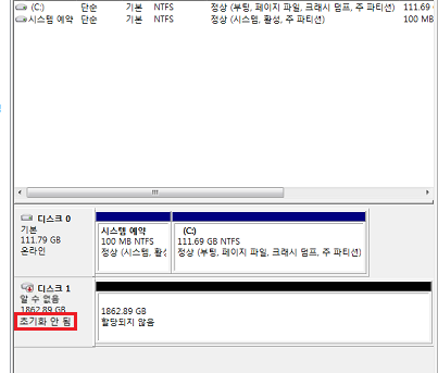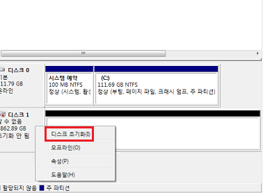 디스크 초기화 선택