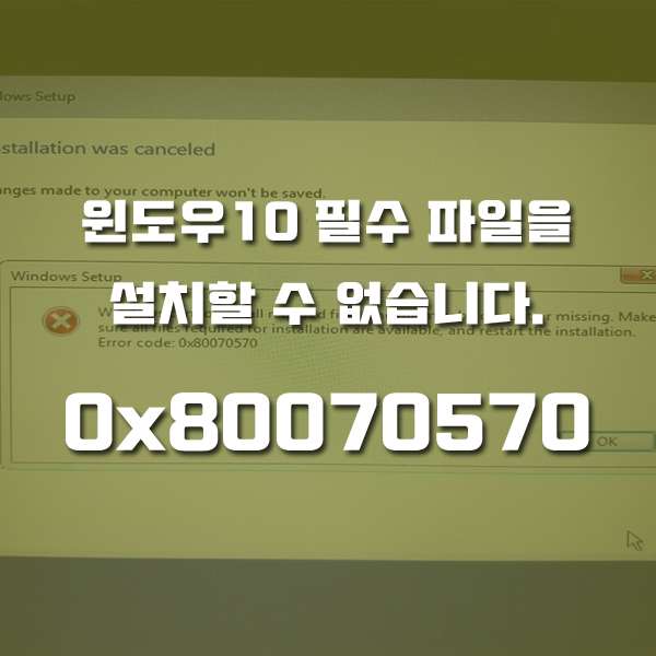 파일이 손상되었거나 누락되어 윈도우 필수파일을 설치할 수 없습니다. 설치에 필요한 모든 파일이 사용가능한지 확인한 뒤, 설치를 다시 시도하여 주세요