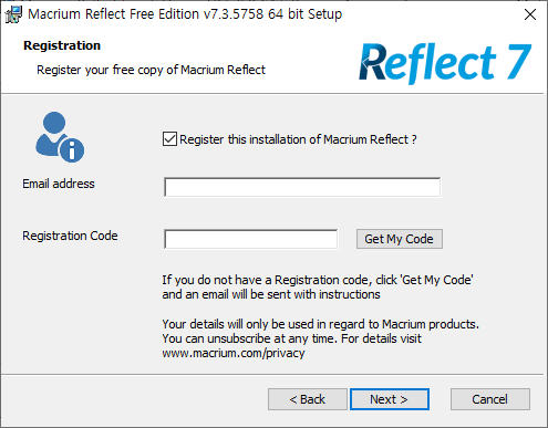 Registration Code : 이메일로 날라온 코드값입력