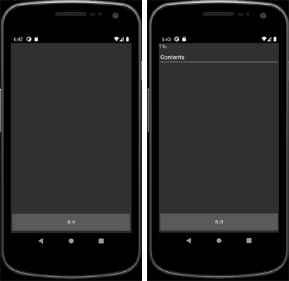 실행후, 추가버튼 클릭시 위와같이 EditText 가 출력된다.