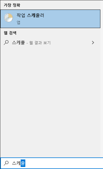 윈도우 키를 눌러 "스케줄러" 를 검색 하여 "작업 스케줄러" 앱을 실행한다.