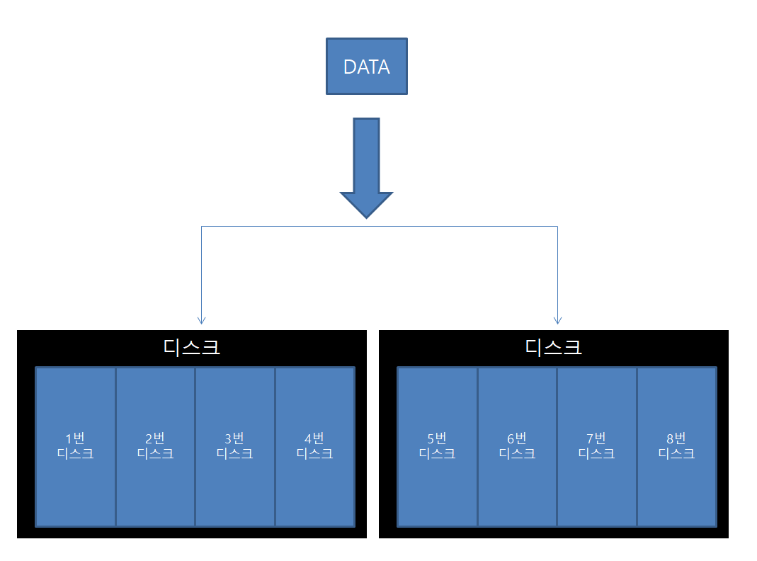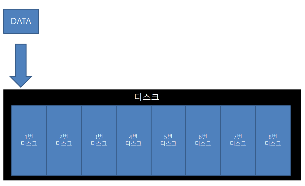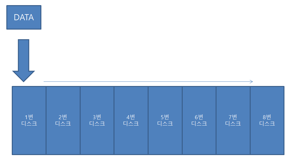 장점 : 엮여있는 모든 디스크를 활용할 수 있어 디스크의 성능이 좋아진다.