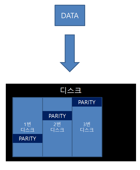 단점 : 안정성이 낮아 하나의 디스크라도 손상이 나오는경우 디스크 전체가 깨지게 된다.