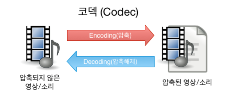Coder + Decoder 의 합성어로 음성 또는 영상의 아날로그 신호를 디지털신호로 변경하거나(Coder), 반대로 디지털 신호를 영상 신호로 변환 하는것을 말한다(Decoder) 이 작업이 선행되는데에는 개념부터 알아야 한다, 먼저 영상 이나 음성같은 데이터는 아날로그 방식으로 데이터를 기록하며 컴퓨터에서는 이 아날로그 데이터는 그대로 읽기 못하고 컴퓨터가 읽을수 있는 디지털 신호가 필요하다 이때 사용되는것이 Coder 이며 이 Coder 에서 데이터 신호 변환 (인코딩) 이 이뤄져 사용자가 컴퓨터를 통해 신호를 보거나 들을수 있는것이다