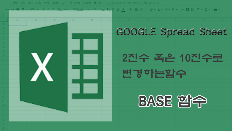 여기서 2진수로 변경하고자할때 B열에는 BASE의 함수를 사용하게됩니다.